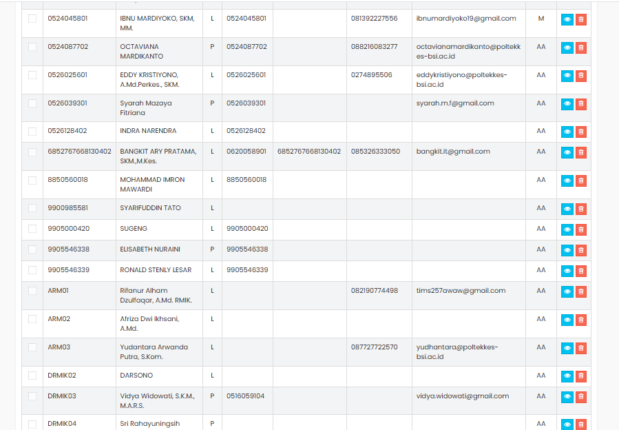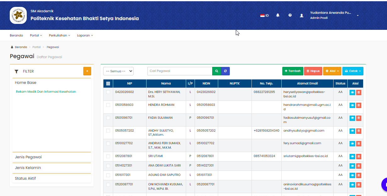 D3 RMIK, Poltekkes BSI data siakad terkait kepegawaian dosen & tendik rm 2025. [Image]