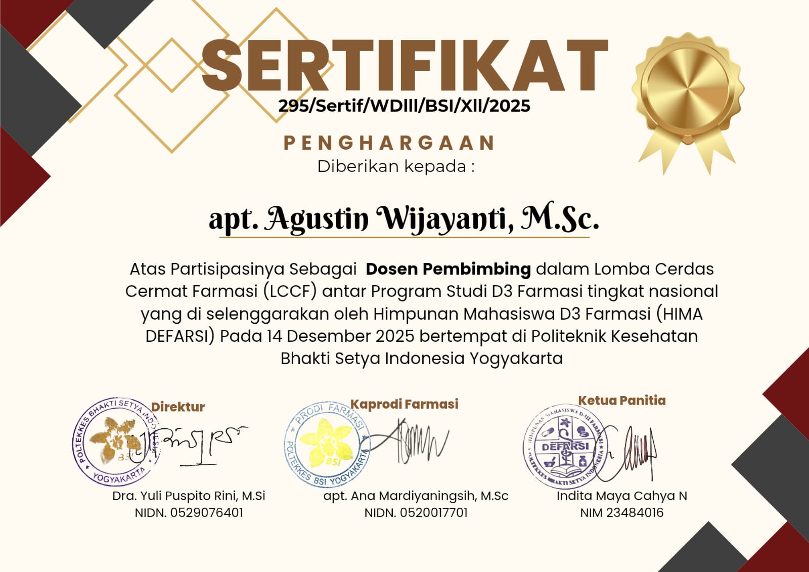 Sertifikat apt. Agustin Wijayanti, M.Sc Edukasi tentang Anemia dan Pentingnya Konsumsi Tablet Tambah Darah bagi Remaja Putri dan Ibu Usia Subur di Demangan RT 06, Jambidan, Banguntapan, Bantul.pdf